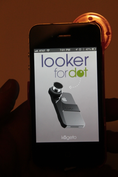 The cool thing about it is that it comes with its very own app, Looker. Of course, the app is free and works very well with the camera lens. The only things you have to get used to are: 1) You have to hold it face up (lens down) with the phone flat and 2) You have to trust the app, not your eyes. If you look at the app picture, you can’t tell what you’re looking at because you basically get a donut shaped viewer that looks very distorted. Don’t look at it.