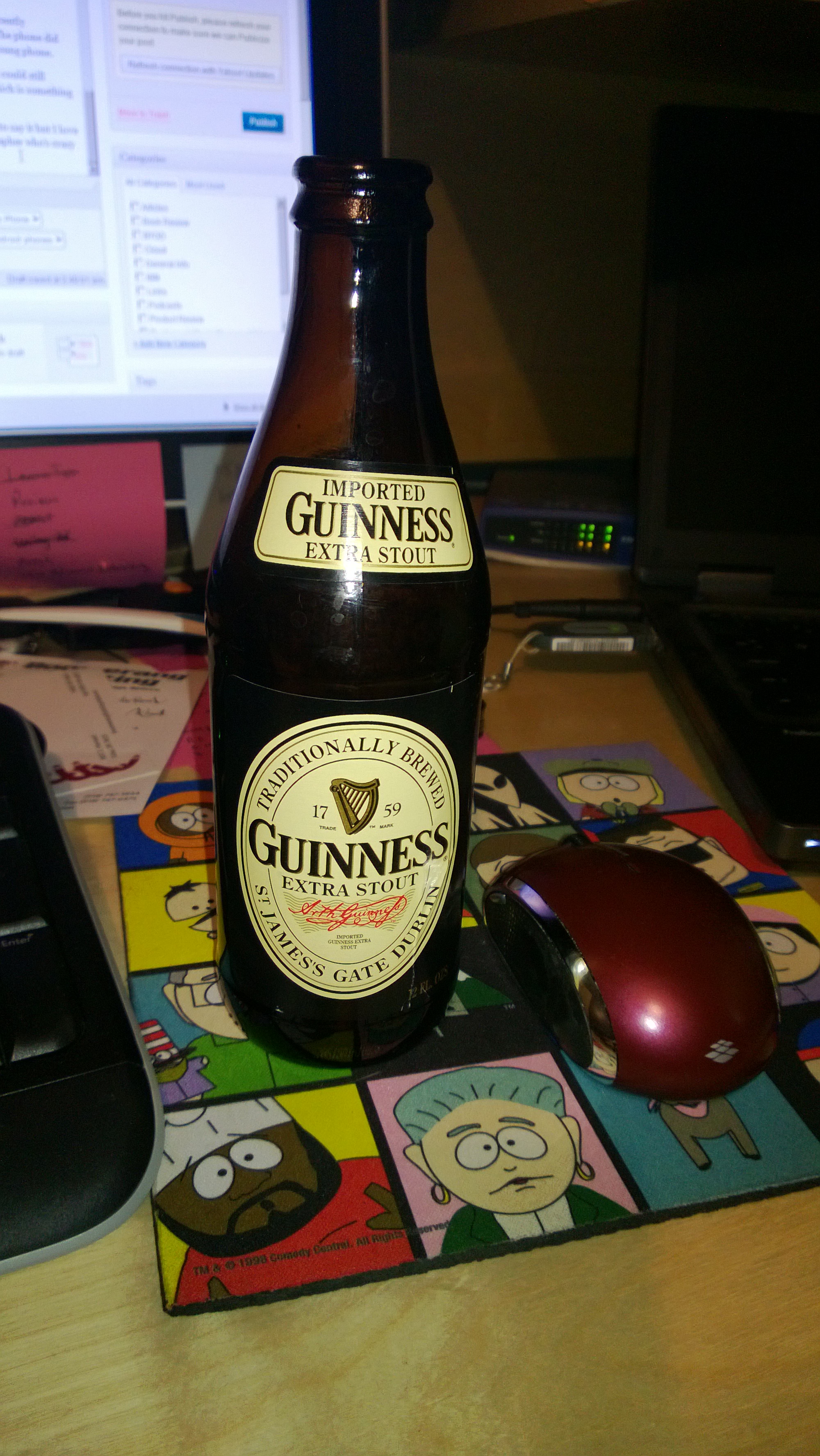 For example, here’s a photo of my mouse, mouse pad and St. Patrick’s Day refreshment as I’m writing this review. Yes, that’s a wireless mouse and a SouthPark mouse pad. And of course, my Guinness Extra Stout*. Don’t judge me.