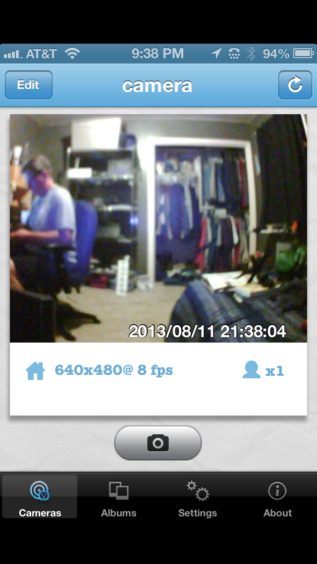 Tap the camera that you just setup. You’ll see a “connecting to camera” message and then in a few seconds, you’ll see what the camera sees. You can also take pictures by tapping the camera icon on the screen. See Figure 1.