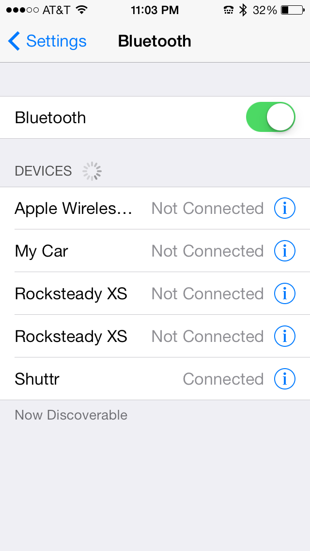 You connect it via Bluetooth by turning on the Shuttr, opening your Settings, opening Bluetooth settings, and then discovering the Shuttr. Tap the Shuttr listing to pair it. You’re done and the Shuttr is ready to use.